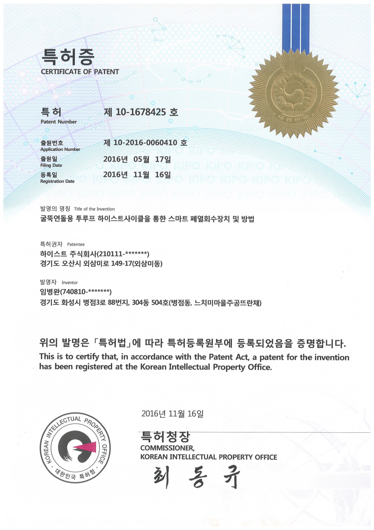 특허증_스마트 폐열회수장치